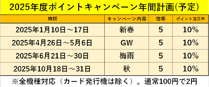 各キャンペーン期間中は、通常のポイント還元率を大幅に上回る特別な倍率でポイントを獲得いただけます。